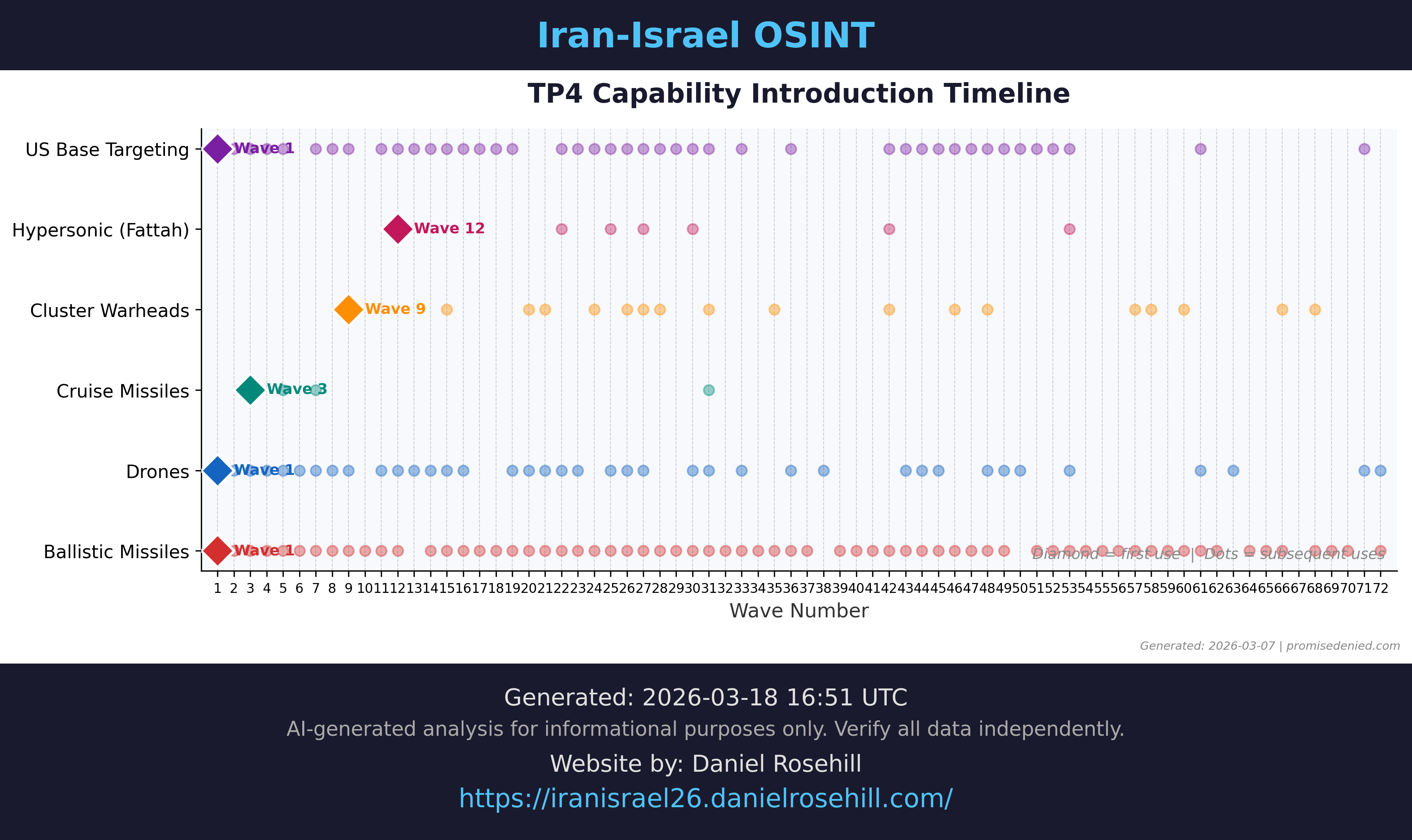 - Notable: First military action under Mojtaba Khamenei's leadership; Fattah hypersonic missile redeployed (previously seen in Wave 22)